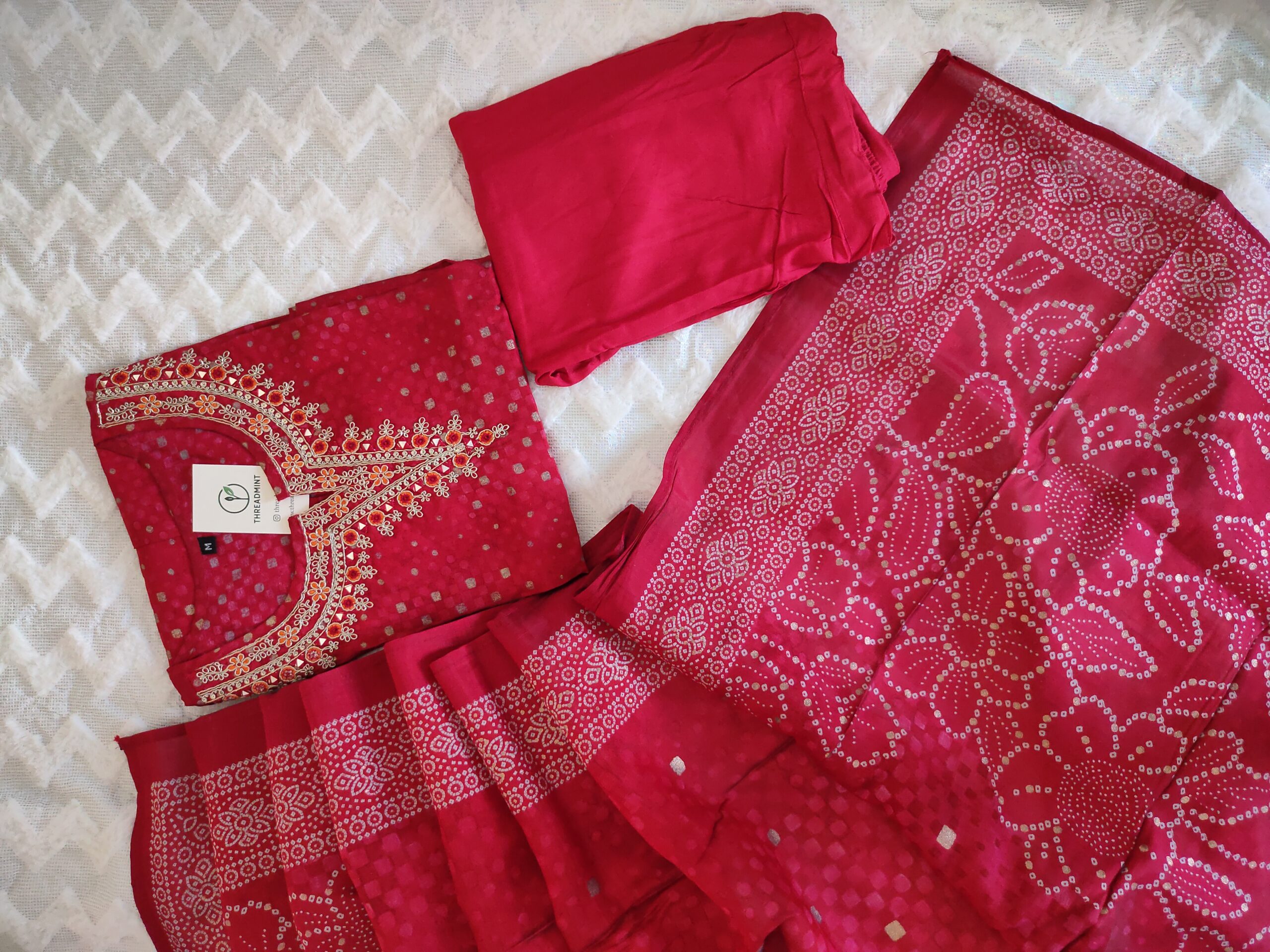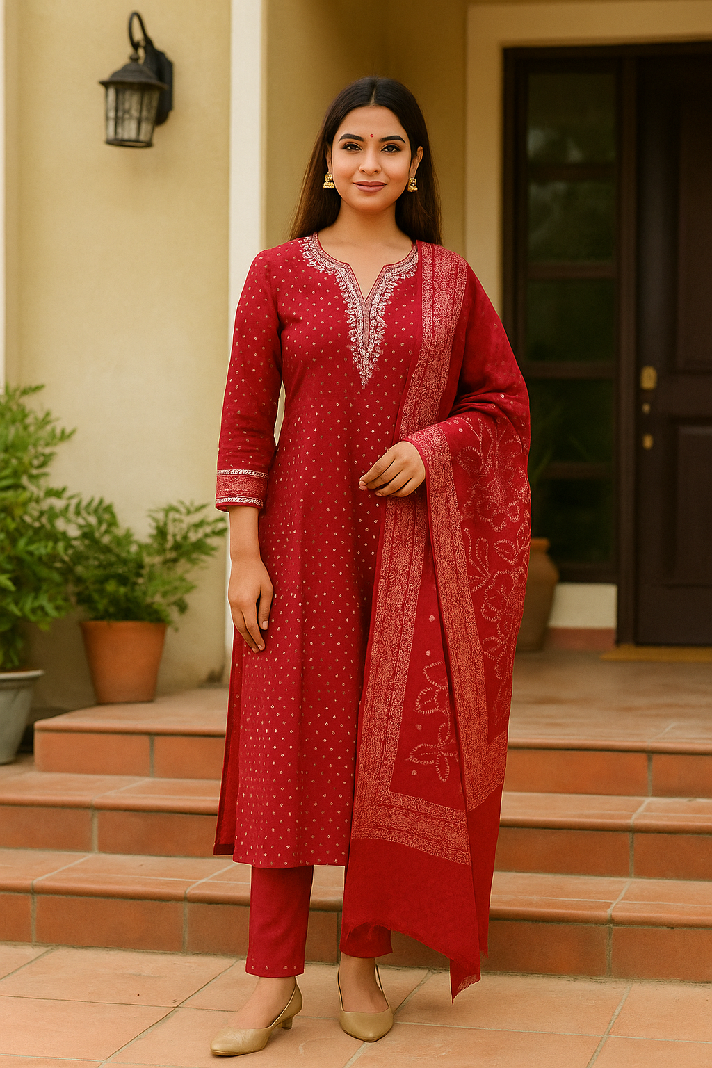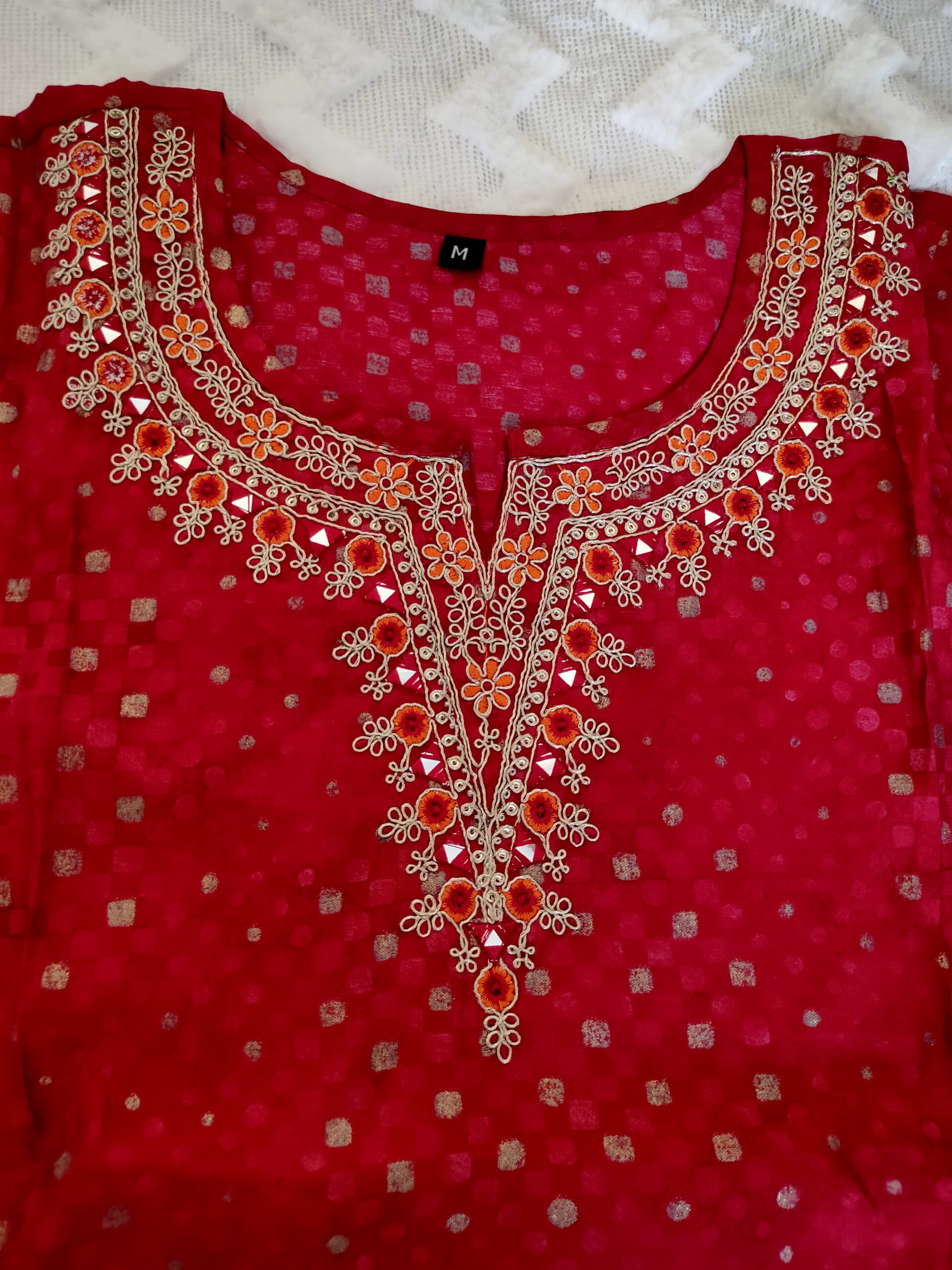 Color: Rich Red with embroidery & golden dot prints